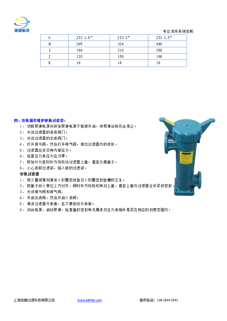袋式過濾器使用說明書;