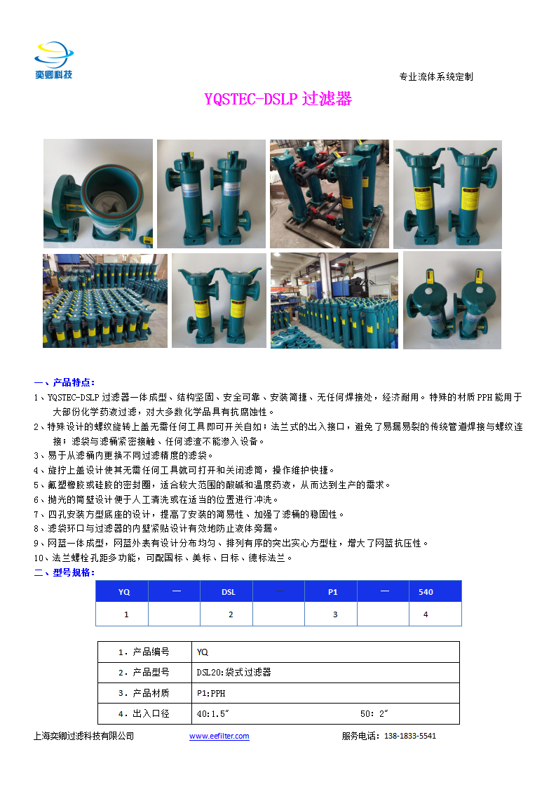 DSP40P-聚丙烯塑膠單袋平蓋PP過濾器