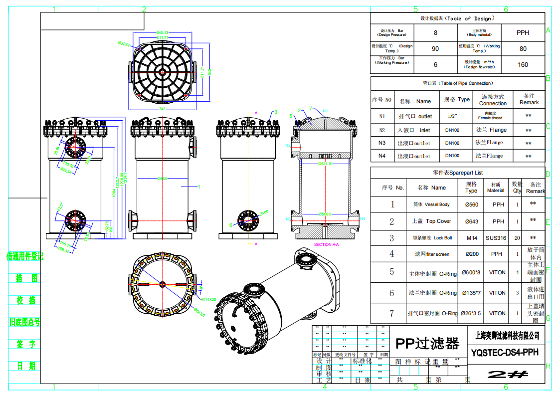 DSP40P-聚丙烯塑膠單袋平蓋PP過濾器